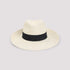 Maison Michel Natural Beige Brisa Eric Ribbon On Brisa Hat. Pure natural white brisa hat, wide-brimmed design, contrasting black strap, side black metallic logo.